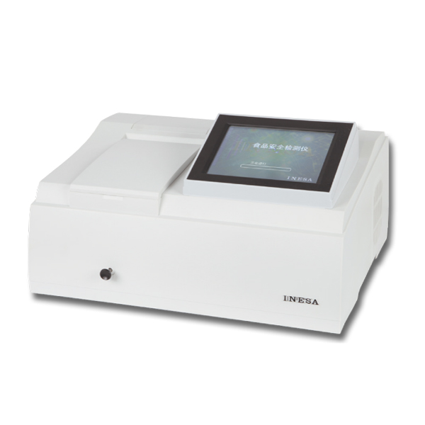 ,酶催化神經(jīng)傳導代謝產(chǎn)物(乙酰膽堿)水解,其水解產(chǎn)物與顯色劑反應,產(chǎn)生黃色物質(zhì),用分光光度計測定412nm下吸光度隨時間的變化值,計算出抑制率,通過抑制率可以判斷出樣品中是否含有有機磷或氨基甲酸酯類農(nóng)藥的殘留?梢詫崿F(xiàn)有機磷及氨基甲酸酯類農(nóng)藥殘留量的現(xiàn)場快速檢測。